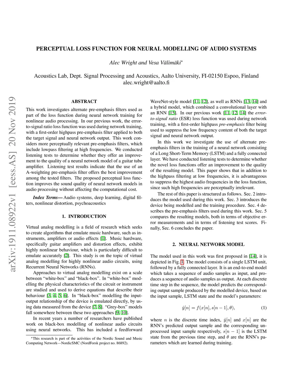 Perceptual Loss Function for Neural Modelling of Audio Systems