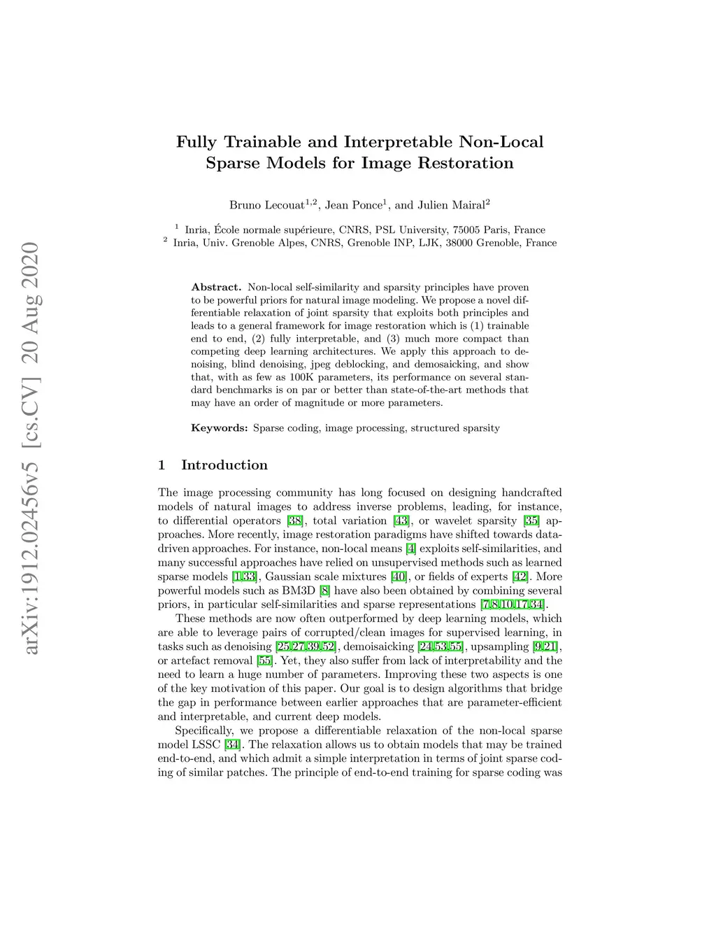 Fully Trainable and Interpretable Non-Local Sparse Models for Image