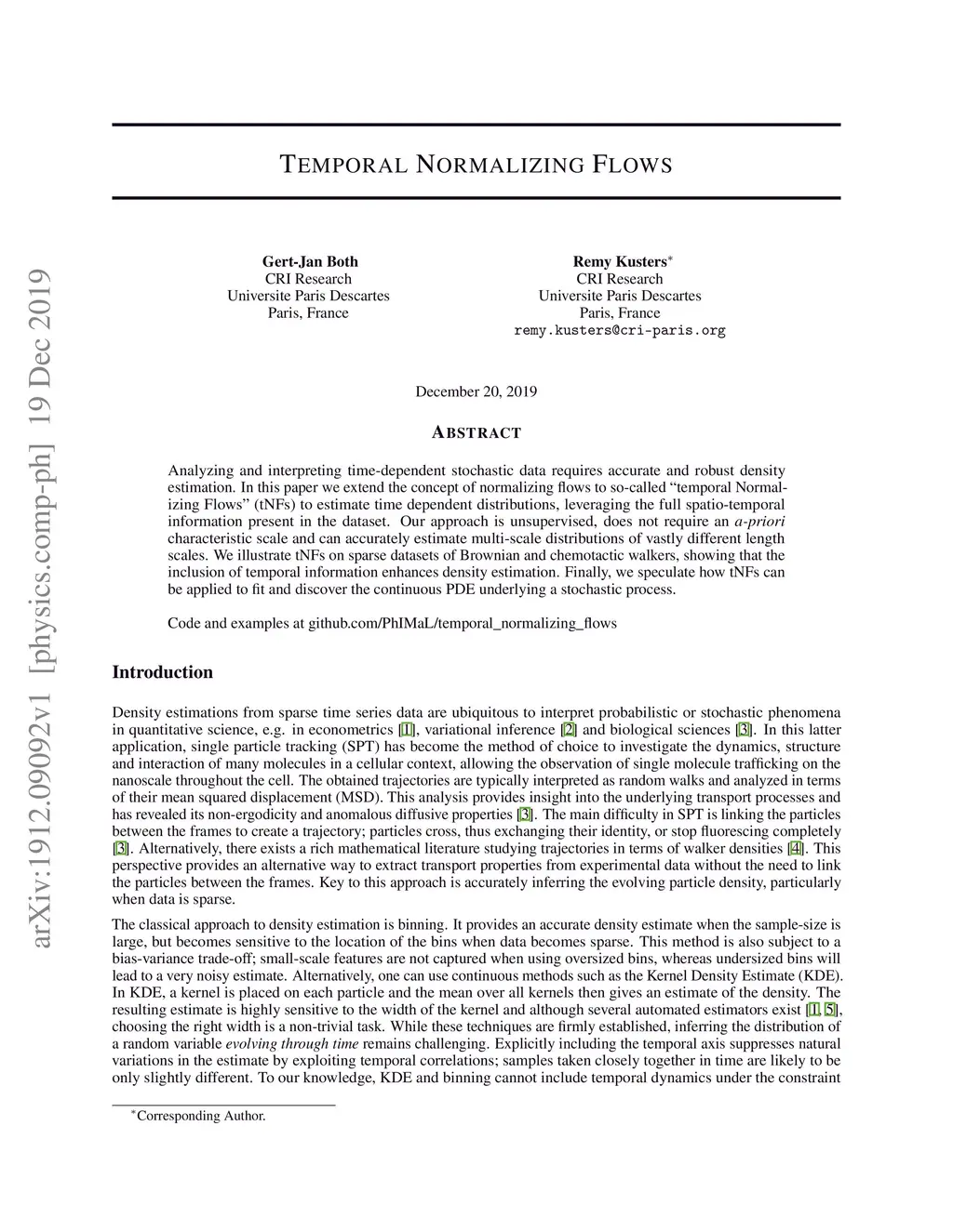 Temporal Normalizing Flows