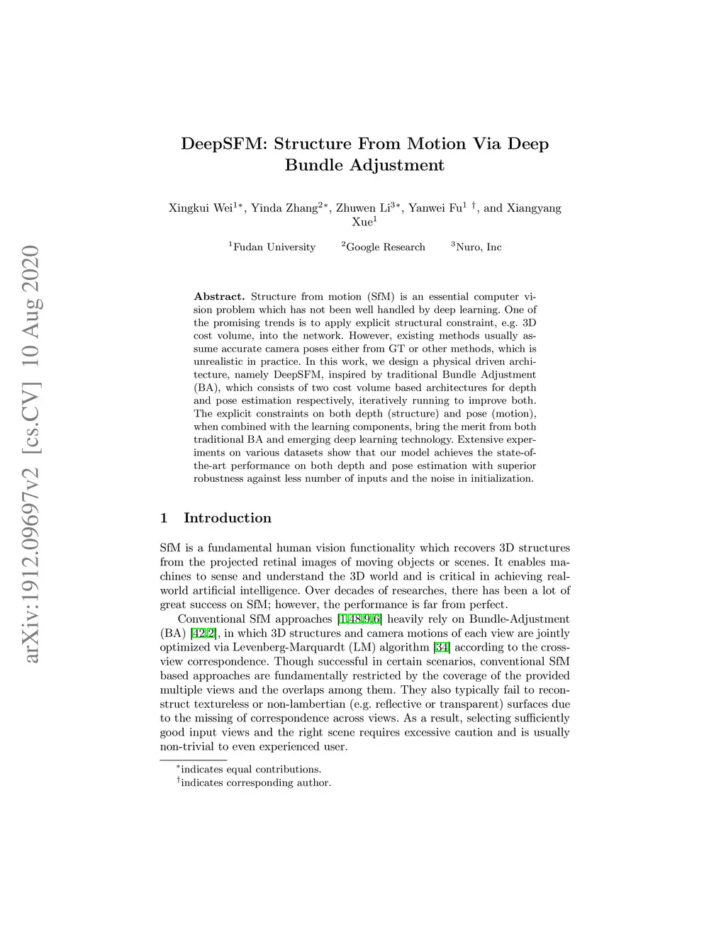 DeepSFM: Structure From Motion Via Deep Bundle Adjustment