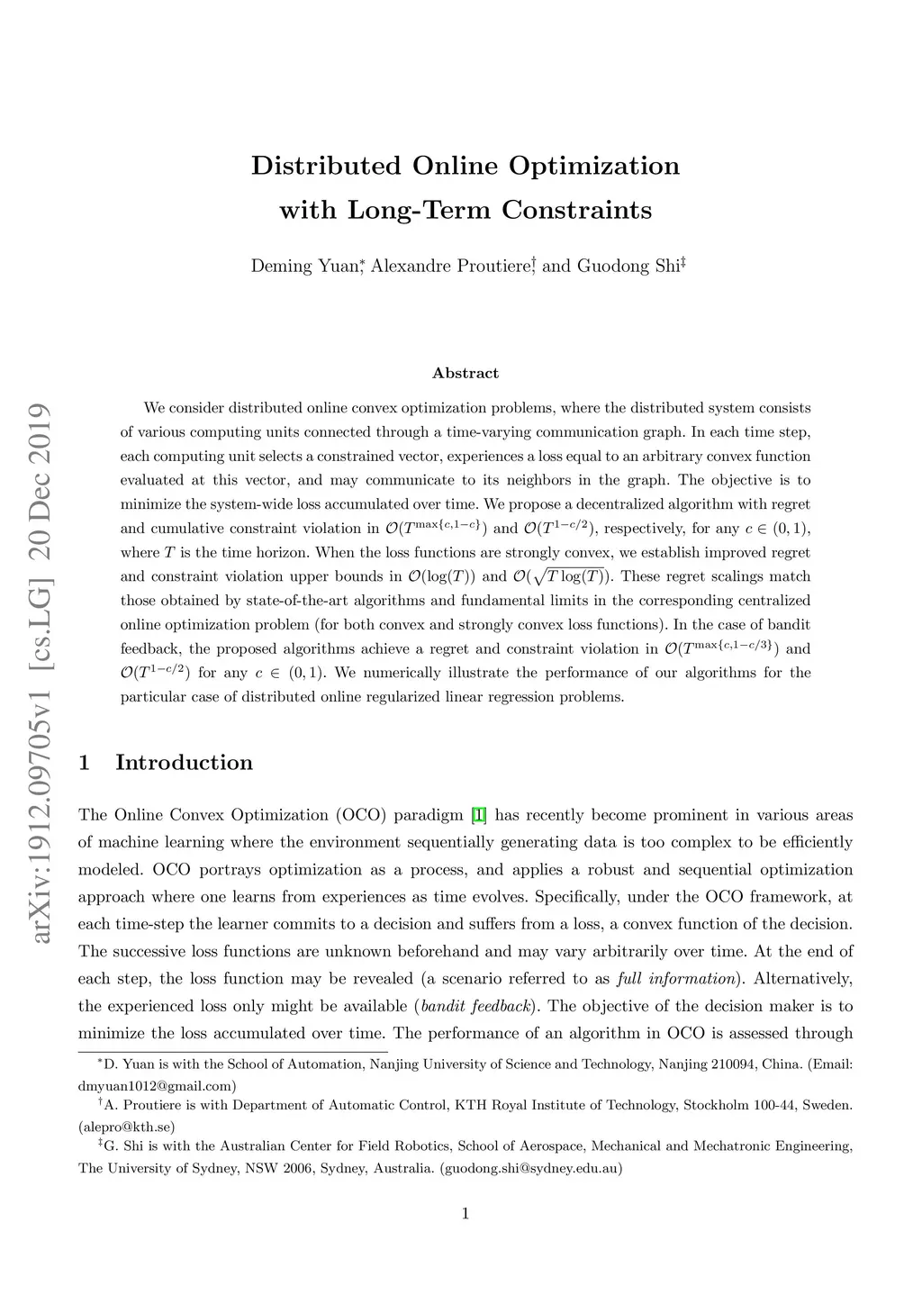 We consider distributed online convex optimization problems, where the distributed system consists of various computing units connected through a time-varying communication graph. In each time step, each computing unit selects a constrained vector, experiences a loss equal to an arbitrary convex function evaluated at this vector, and may communicate to its neighbors in the graph. The objective is to minimize the system-wide loss accumulated over time. We propose a decentralized algorithm with regret and cumulative constraint violation in and , respectively, for any , where is the time horizon. When the loss functions are strongly convex, we establish improved regret and constraint violation upper bounds in and . These regret scalings match those obtained by state-of-the-art algorithms and fundamental limits in the corresponding centralized online optimization problem (for both convex and strongly convex loss functions). In the case of bandit feedback, the proposed algorithms achieve a regret and constraint violation in and for any . We numerically illustrate the performance of our algorithms for the particular case of distributed online regularized linear regression problems.