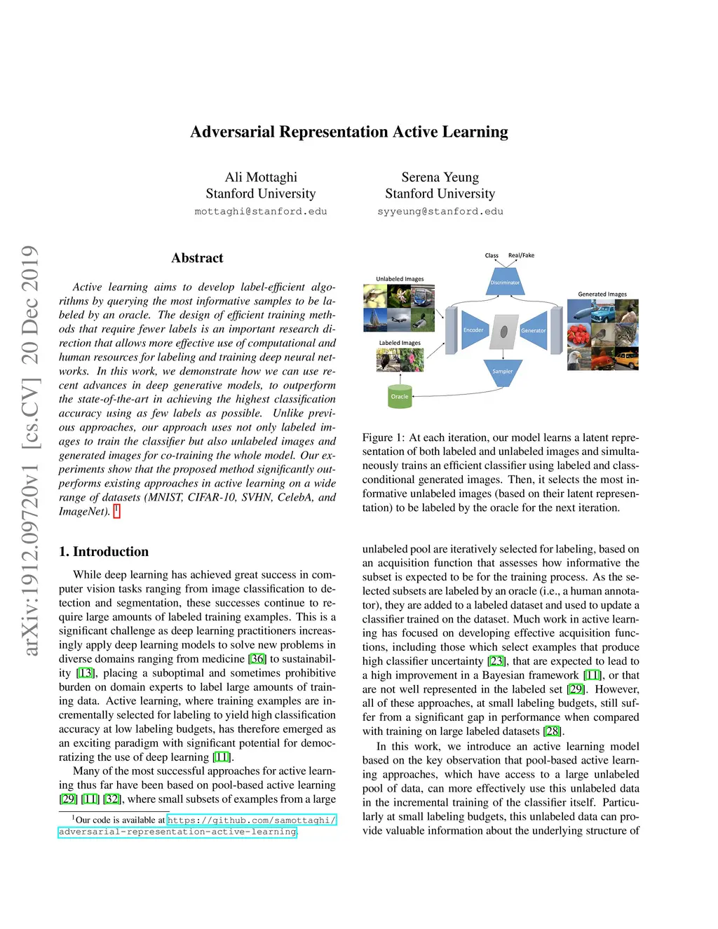 Active learning aims to develop label-efficient algorithms by querying the most informative samples to be labeled by an oracle. The design of efficient training methods that require fewer labels is an important research direction that allows more effective use of computational and human resources for labeling and training deep neural networks. In this work, we demonstrate how we can use recent advances in deep generative models, to outperform the state-of-the-art in achieving the highest classification accuracy using as few labels as possible. Unlike previous approaches, our approach uses not only labeled images to train the classifier but also unlabeled images and generated images for co-training the whole model. Our experiments show that the proposed method significantly outperforms existing approaches in active learning on a wide range of datasets (MNIST, CIFAR-10, SVHN, CelebA, and ImageNet).