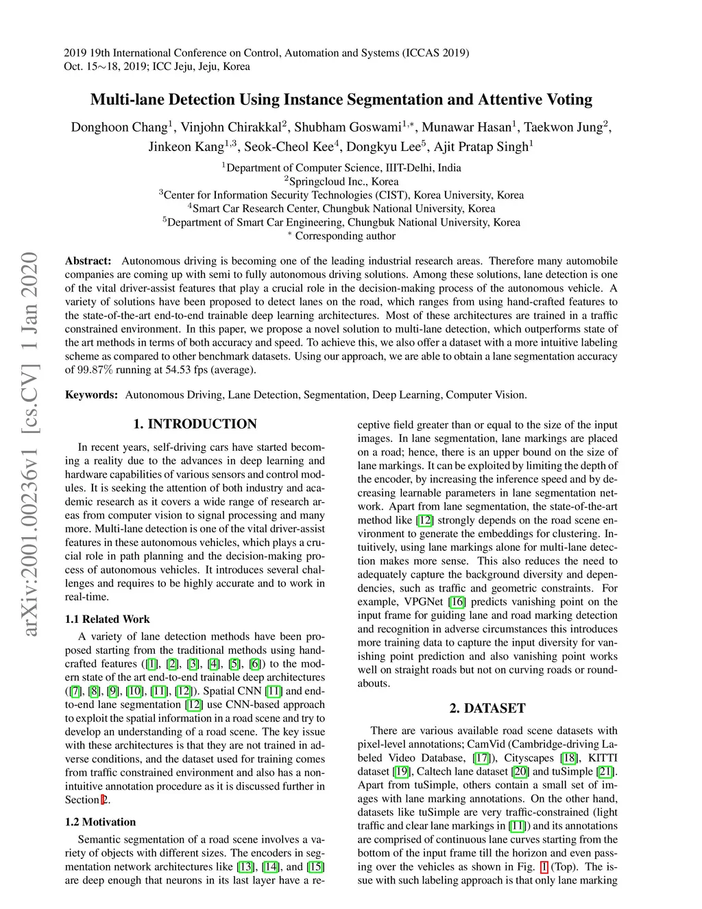 Multi-lane Detection Using Instance Segmentation and Attentive Voting