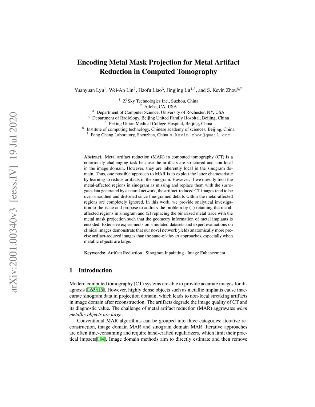 Encoding Metal Mask Projection for Metal Artifact Reduction in Computed