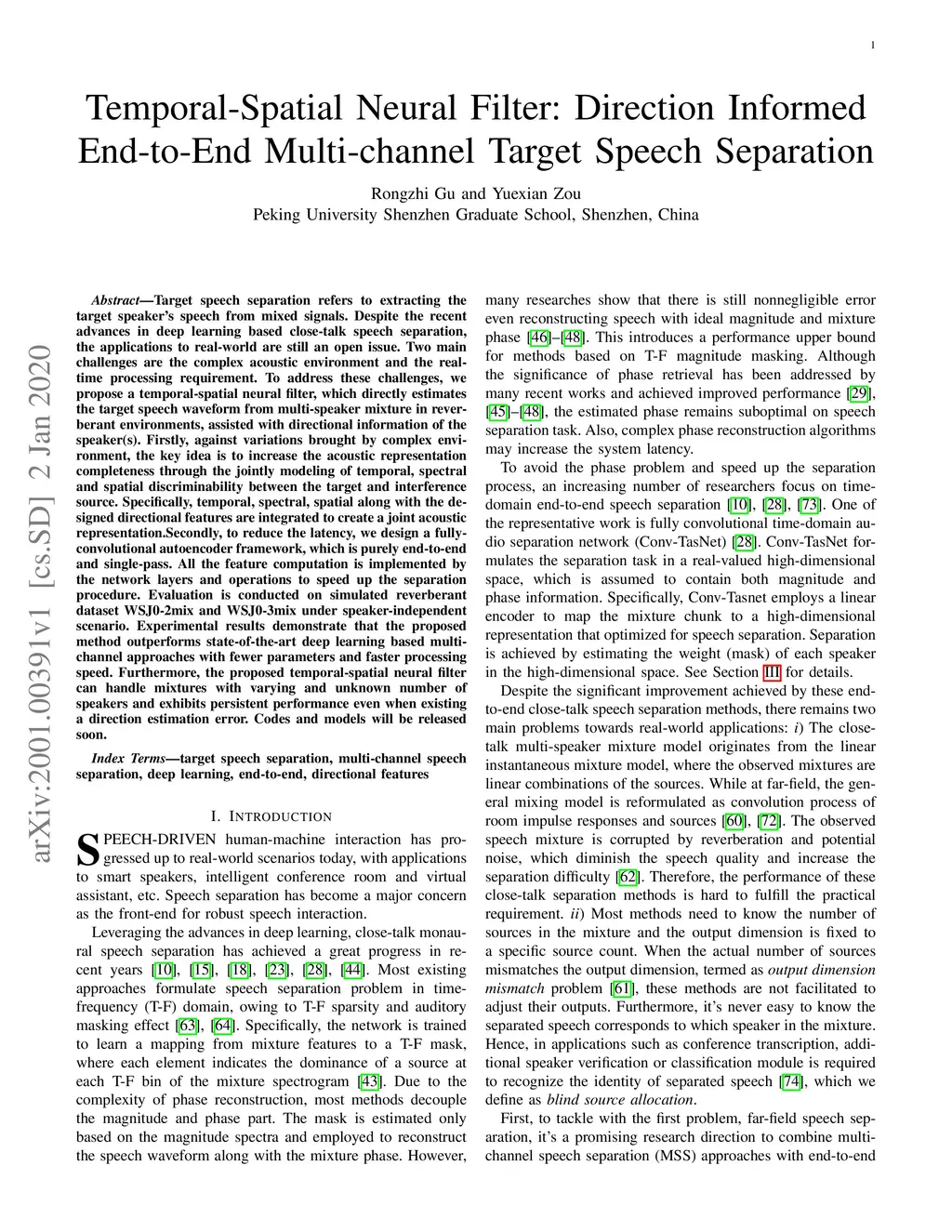 Temporal-Spatial Neural Filter: Direction Informed End-to-End