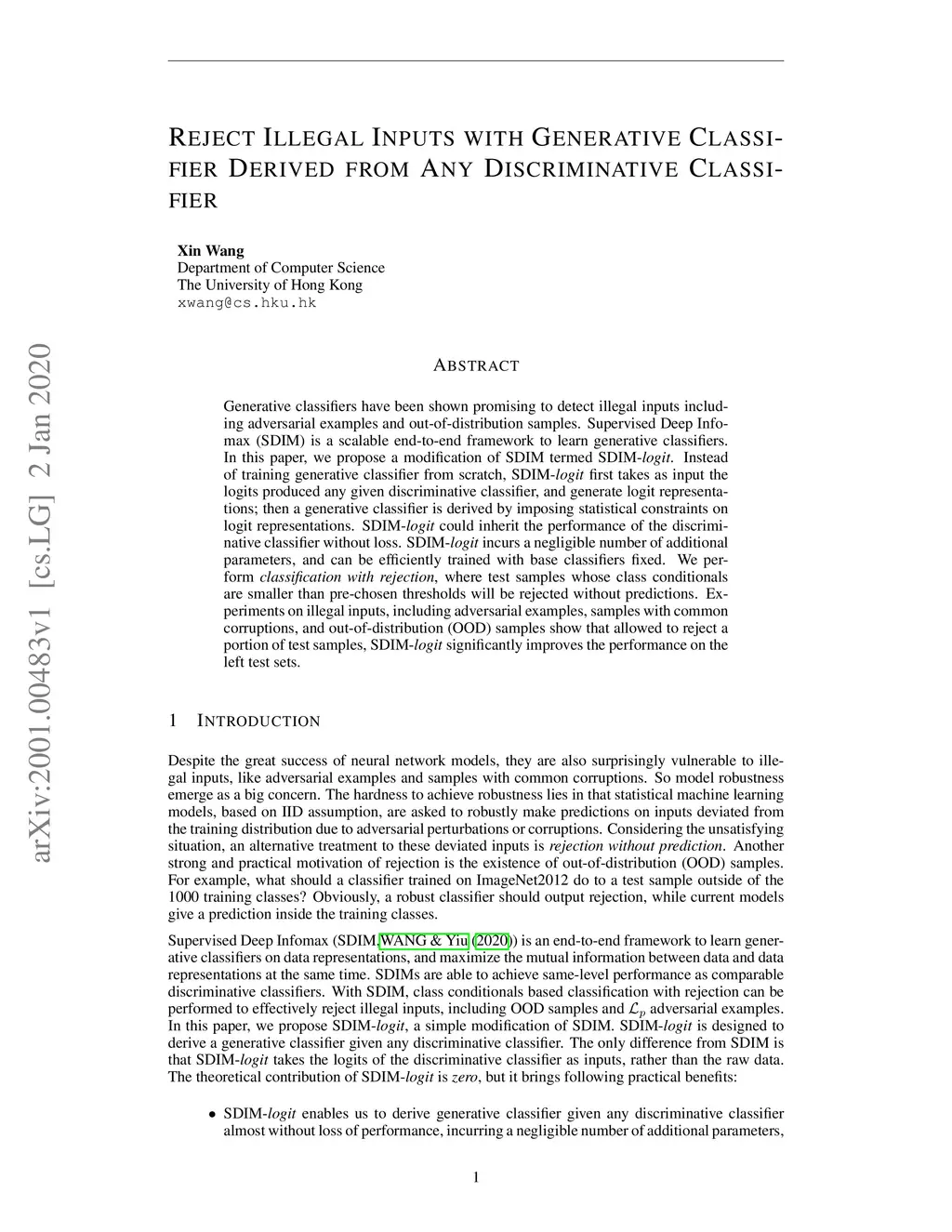 Generative classifiers have been shown promising to detect illegal inputs including adversarial examples and out-of-distribution samples. Supervised Deep Infomax~(SDIM) is a scalable end-to-end framework to learn generative classifiers. In this paper, we propose a modification of SDIM termed SDIM-\emph{logit}. Instead of training generative classifier from scratch, SDIM-\emph{logit} first takes as input the logits produced any given discriminative classifier, and generate logit representations; then a generative classifier is derived by imposing statistical constraints on logit representations. SDIM-\emph{logit} could inherit the performance of the discriminative classifier without loss. SDIM-\emph{logit} incurs a negligible number of additional parameters, and can be efficiently trained with base classifiers fixed. We perform \emph{classification with rejection}, where test samples whose class conditionals are smaller than pre-chosen thresholds will be rejected without predictions. Experiments on illegal inputs, including adversarial examples, samples with common corruptions, and out-of-distribution~(OOD) samples show that allowed to reject a portion of test samples, SDIM-\emph{logit} significantly improves the performance on the left test sets.