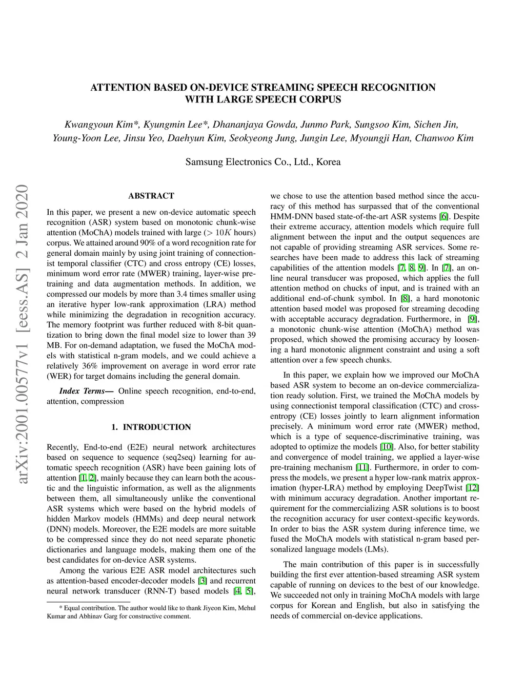 Attention based on-device streaming speech recognition with large speech