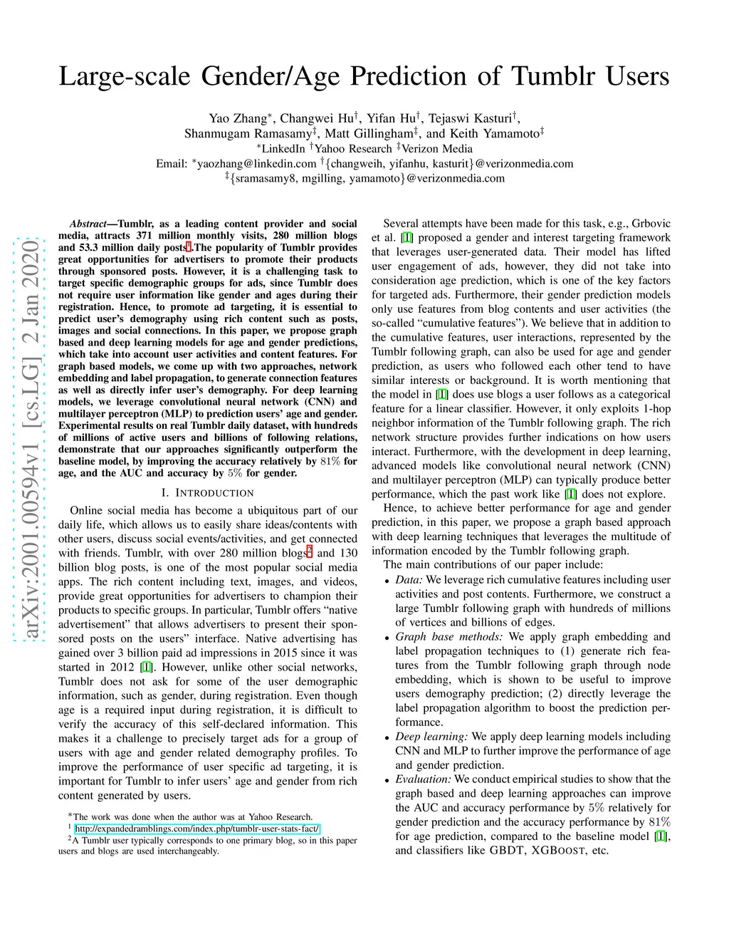 Large-scale Gender/Age Prediction of Tumblr Users