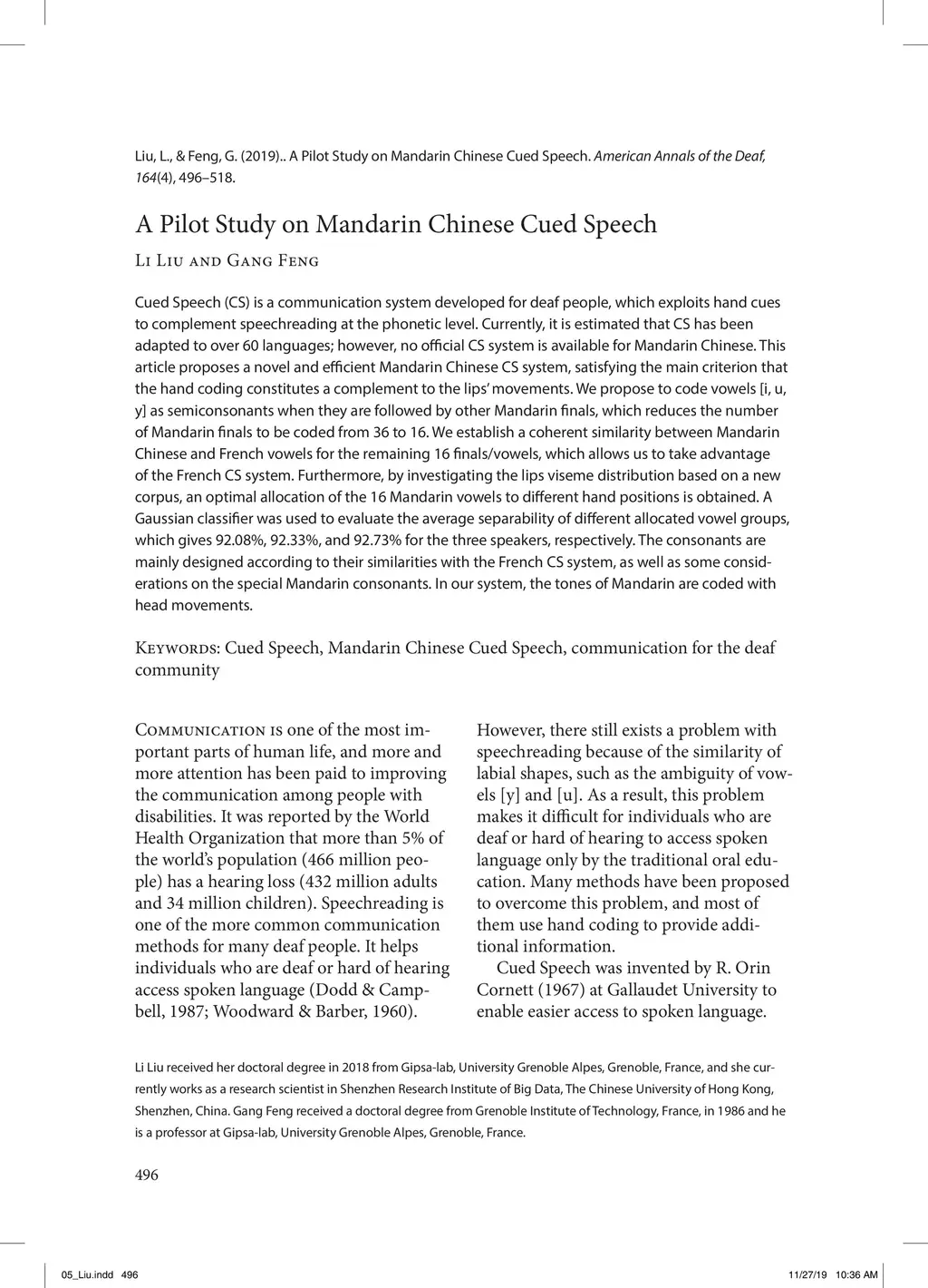 A Pilot Study on Mandarin Chinese Cued Speech