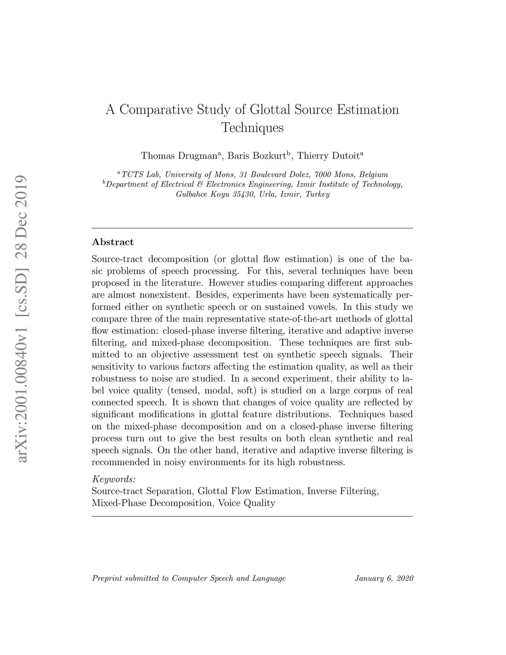 A Comparative Study of Glottal Source Estimation Techniques