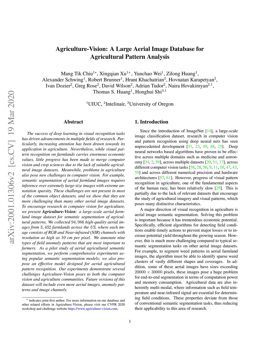 Agriculture-Vision: A Large Aerial Image Database for Agricultural