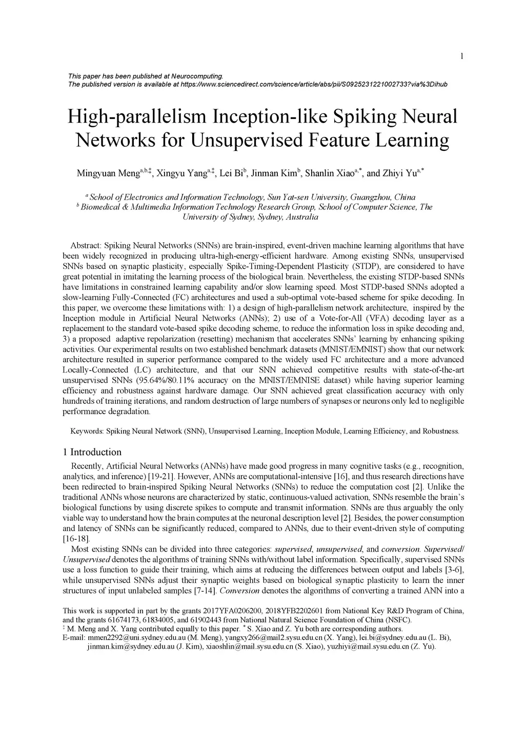 High-parallelism Inception-like Spiking Neural Networks for Unsupervised