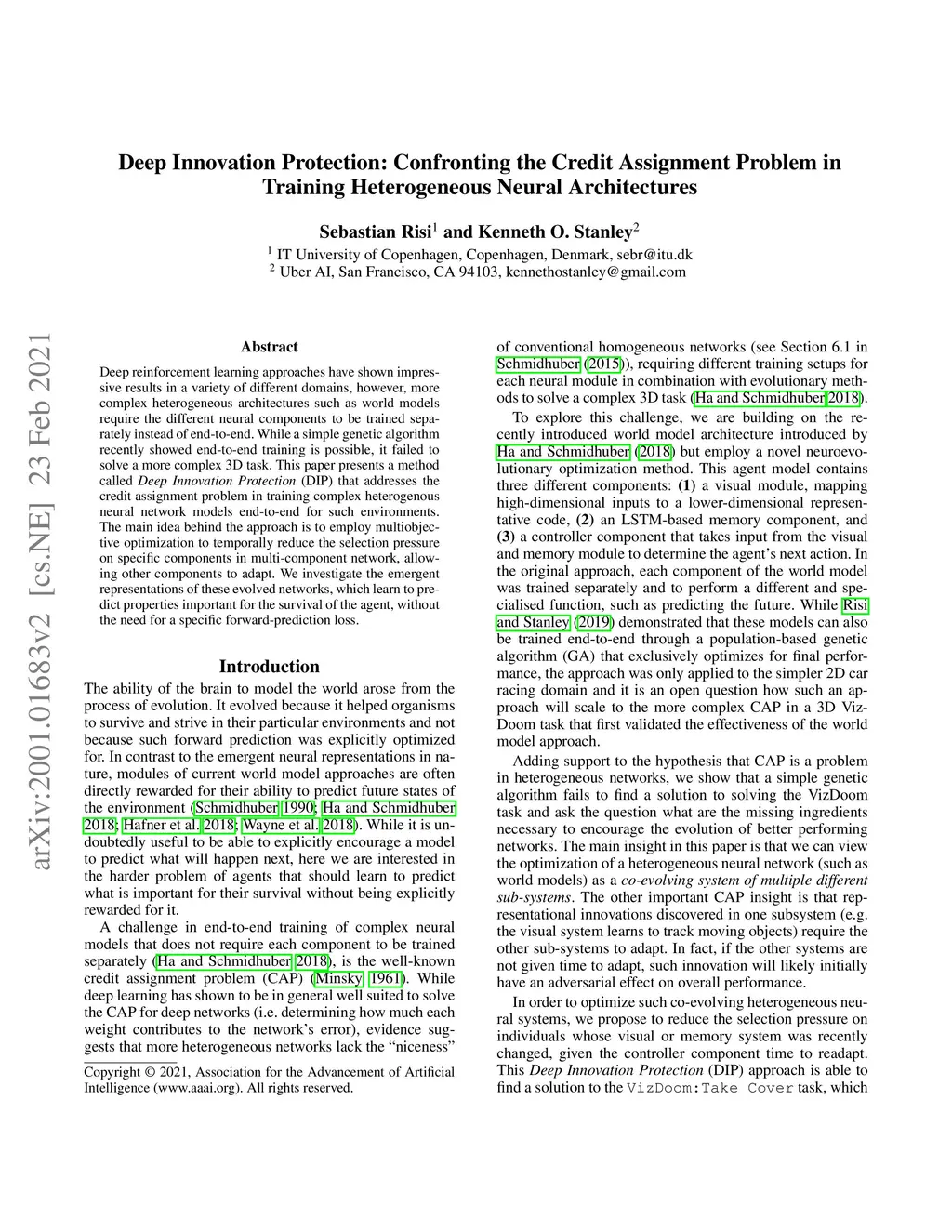 Deep Innovation Protection: Confronting the Credit Assignment Problem in