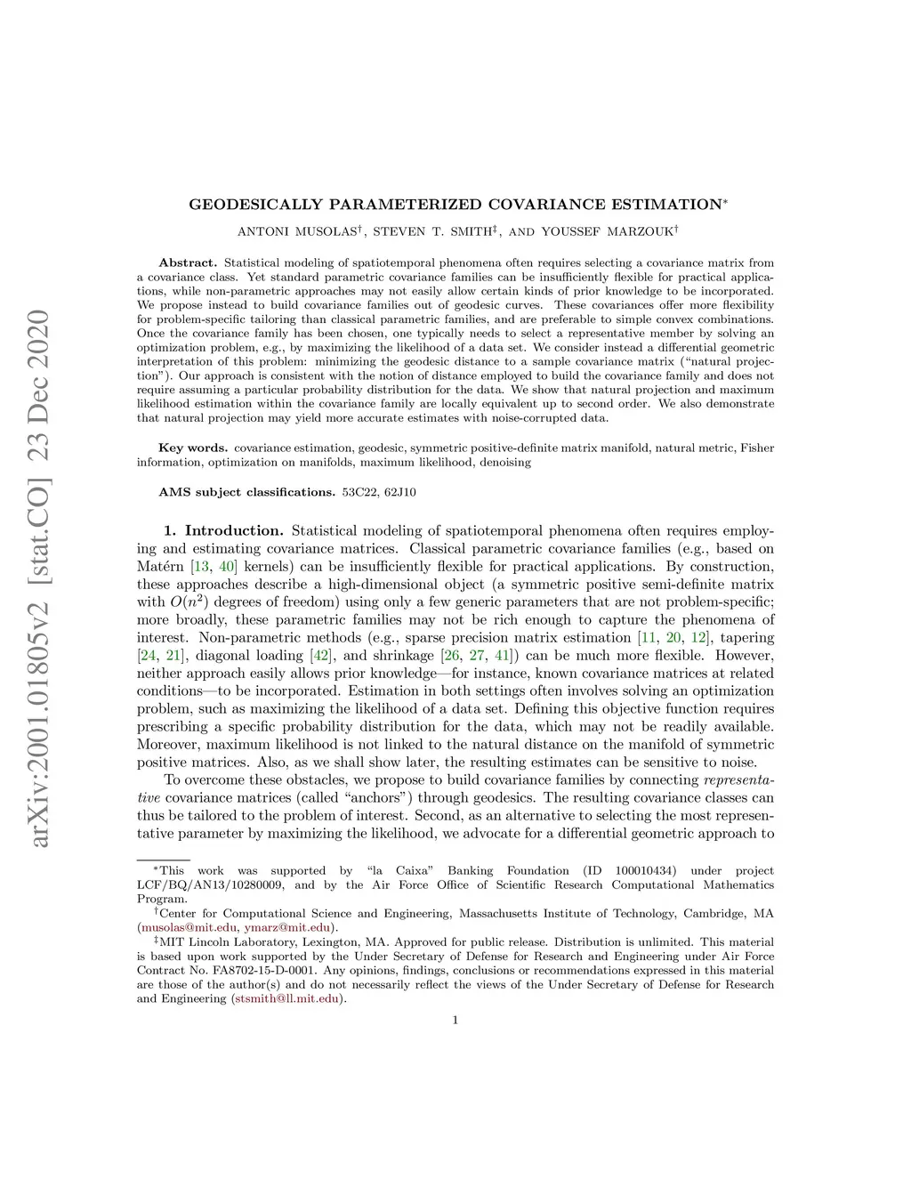 Geodesically parameterized covariance estimation