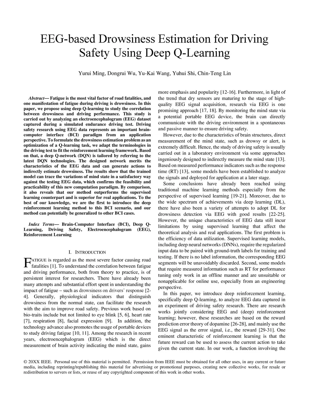 EEG-based Drowsiness Estimation for Driving Safety using Deep Q-Learning