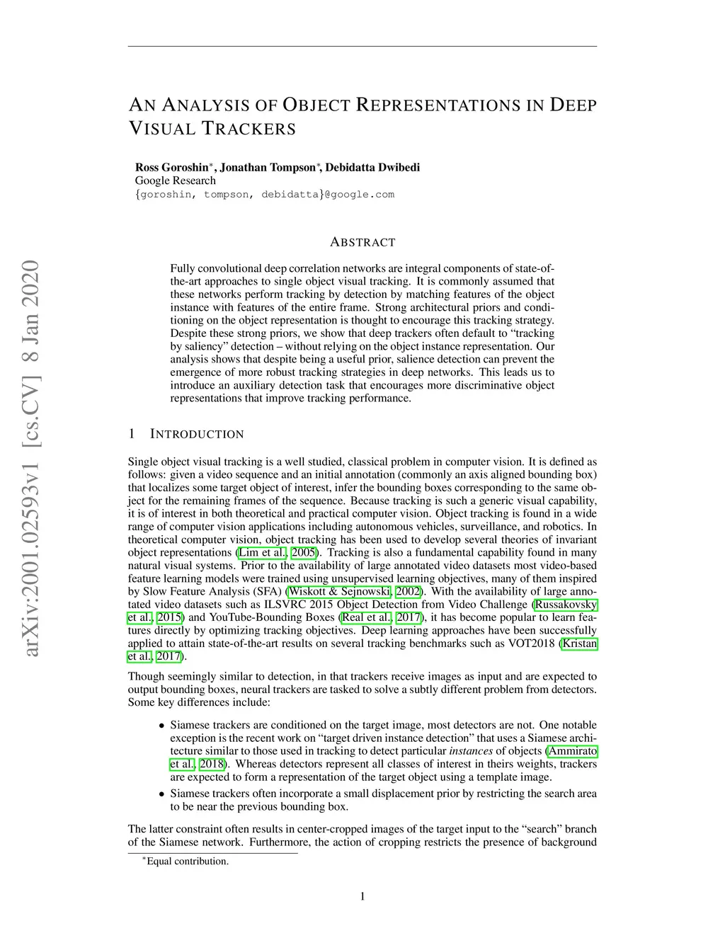 Fully convolutional deep correlation networks are integral components of state-of the-art approaches to single object visual tracking. It is commonly assumed that these networks perform tracking by detection by matching features of the object instance with features of the entire frame. Strong architectural priors and conditioning on the object representation is thought to encourage this tracking strategy. Despite these strong priors, we show that deep trackers often default to tracking by saliency detection - without relying on the object instance representation. Our analysis shows that despite being a useful prior, salience detection can prevent the emergence of more robust tracking strategies in deep networks. This leads us to introduce an auxiliary detection task that encourages more discriminative object representations that improve tracking performance.