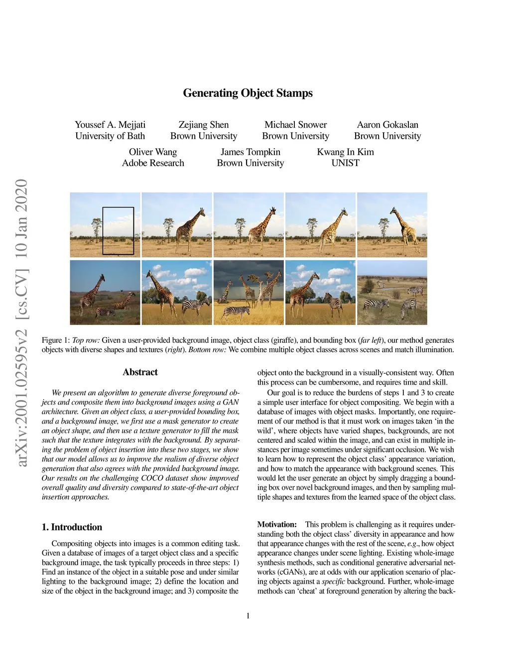 We present an algorithm to generate diverse foreground objects and composite them into background images using a GAN architecture. Given an object class, a user-provided bounding box, and a background image, we first use a mask generator to create an object shape, and then use a texture generator to fill the mask such that the texture integrates with the background. By separating the problem of object insertion into these two stages, we show that our model allows us to improve the realism of diverse object generation that also agrees with the provided background image. Our results on the challenging COCO dataset show improved overall quality and diversity compared to state-of-the-art object insertion approaches.