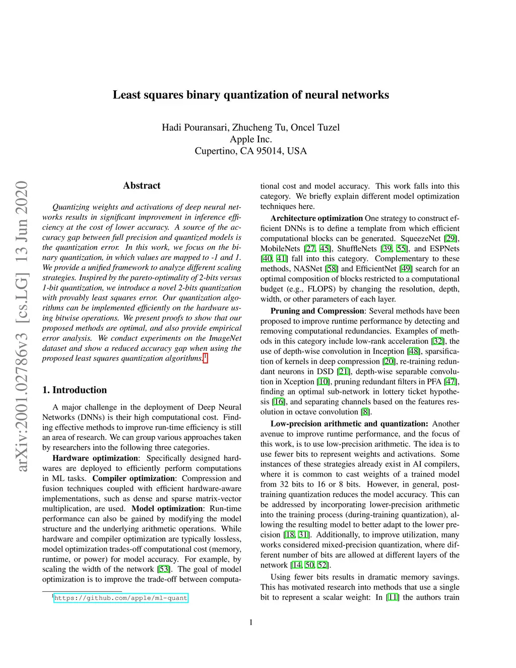 Quantizing weights and activations of deep neural networks results in significant improvement in inference efficiency at the cost of lower accuracy. A source of the accuracy gap between full precision and quantized models is the quantization error. In this work, we focus on the binary quantization, in which values are mapped to -1 and 1. We provide a unified framework to analyze different scaling strategies. Inspired by the pareto-optimality of 2-bits versus 1-bit quantization, we introduce a novel 2-bits quantization with provably least squares error. Our quantization algorithms can be implemented efficiently on the hardware using bitwise operations. We present proofs to show that our proposed methods are optimal, and also provide empirical error analysis. We conduct experiments on the ImageNet dataset and show a reduced accuracy gap when using the proposed least squares quantization algorithms.