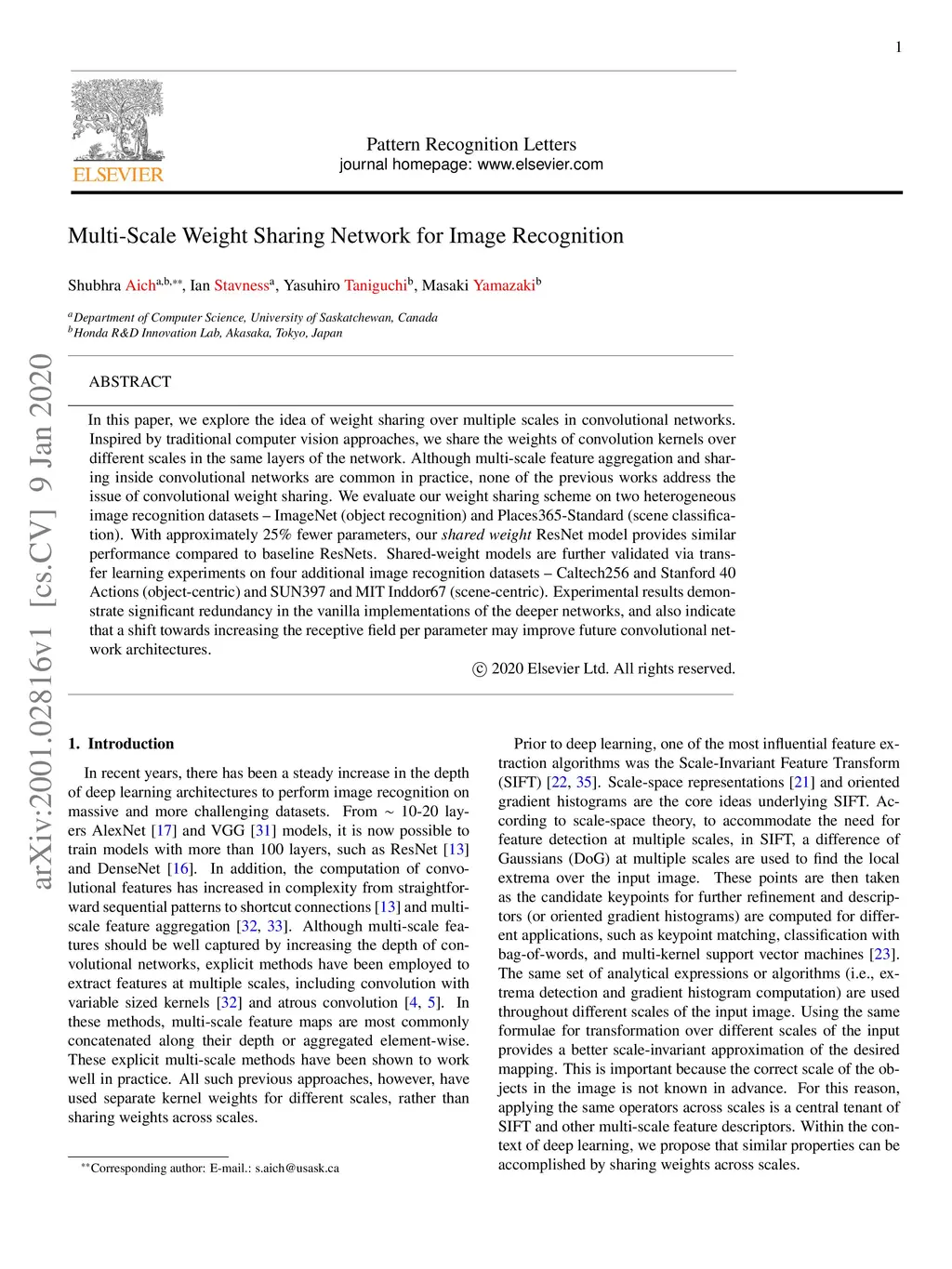 Multi-Scale Weight Sharing Network for Image Recognition