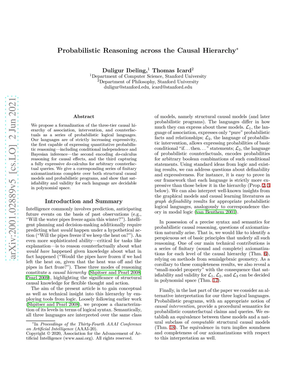 Probabilistic Reasoning across the Causal Hierarchy