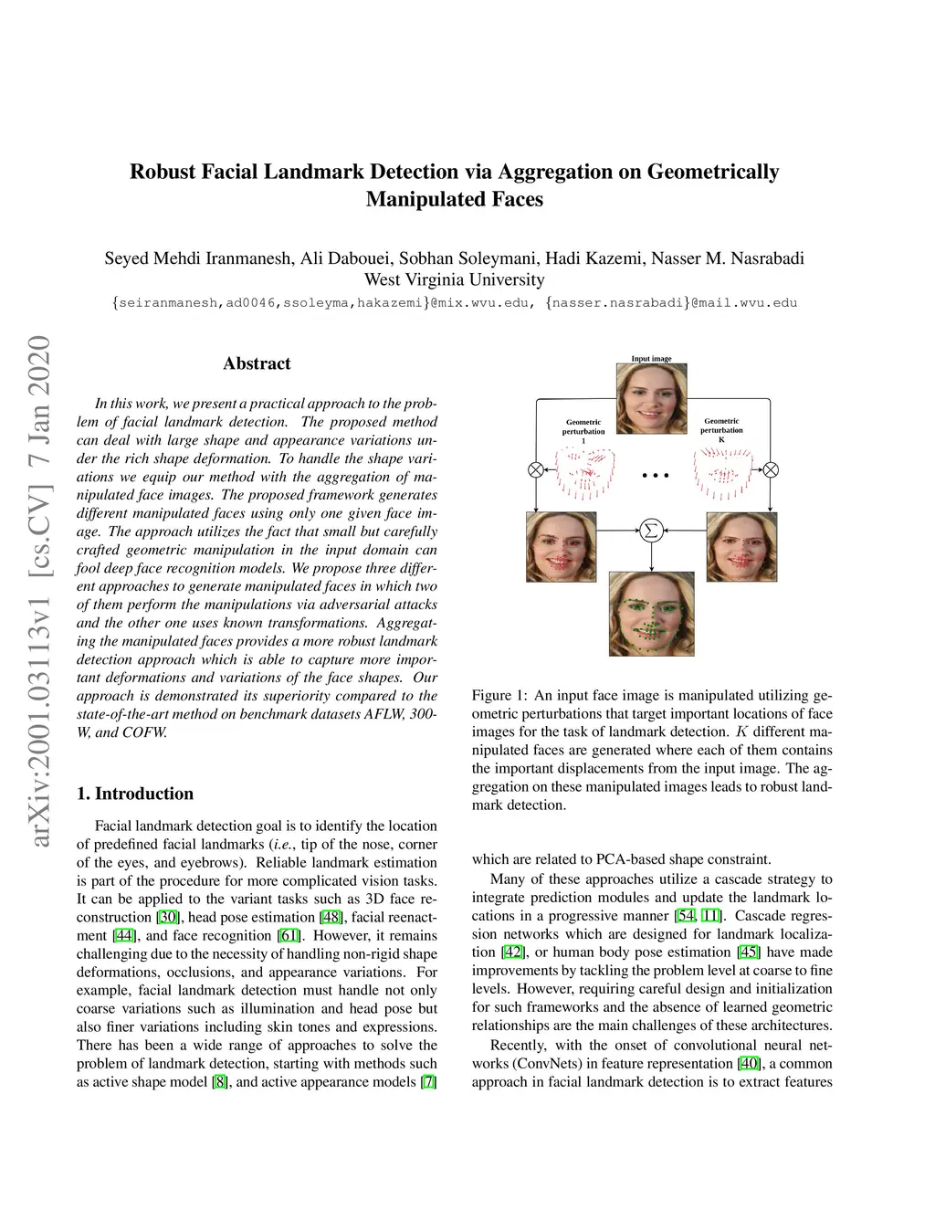 In this work, we present a practical approach to the problem of facial landmark detection. The proposed method can deal with large shape and appearance variations under the rich shape deformation. To handle the shape variations we equip our method with the aggregation of manipulated face images. The proposed framework generates different manipulated faces using only one given face image. The approach utilizes the fact that small but carefully crafted geometric manipulation in the input domain can fool deep face recognition models. We propose three different approaches to generate manipulated faces in which two of them perform the manipulations via adversarial attacks and the other one uses known transformations. Aggregating the manipulated faces provides a more robust landmark detection approach which is able to capture more important deformations and variations of the face shapes. Our approach is demonstrated its superiority compared to the state-of-the-art method on benchmark datasets AFLW, 300-W, and COFW.