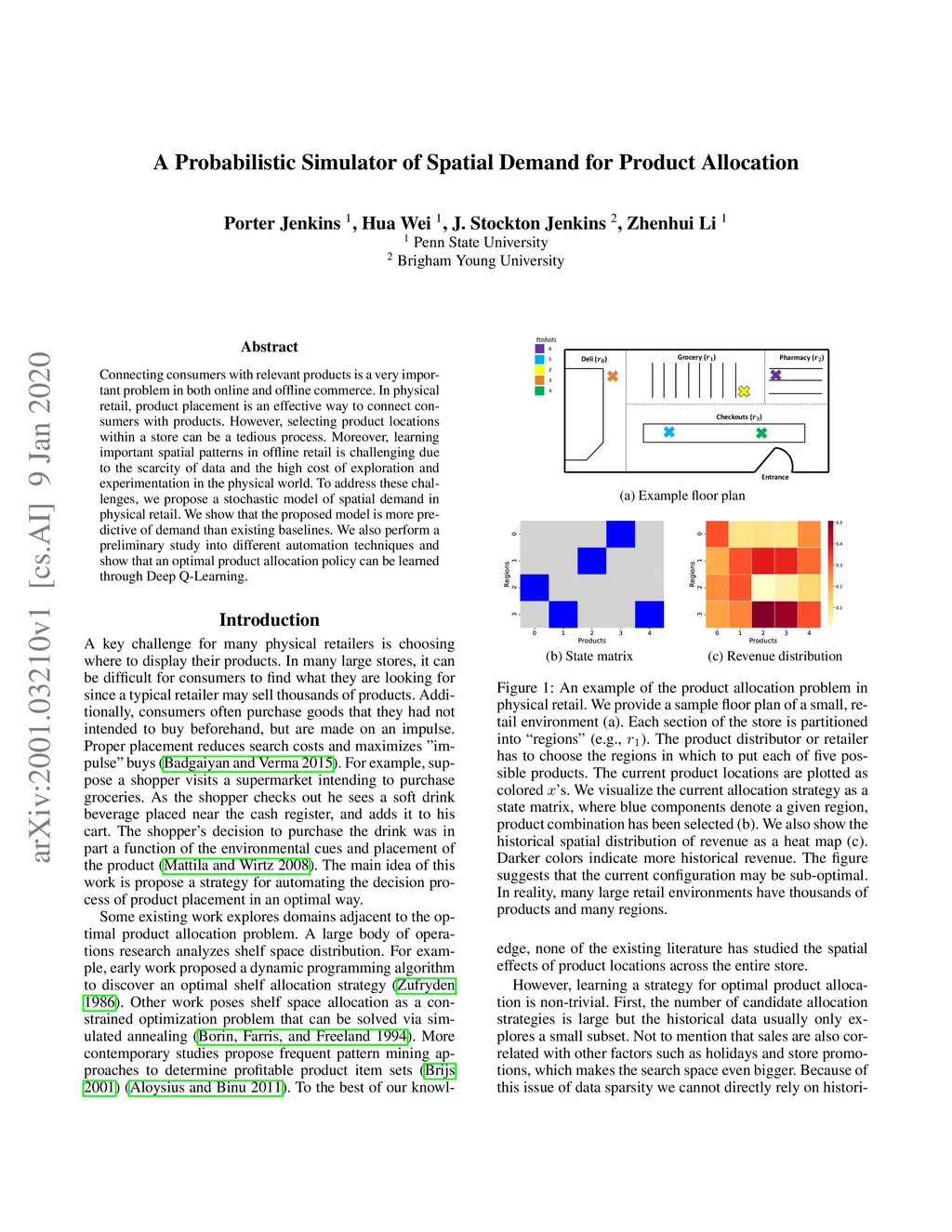 Connecting consumers with relevant products is a very important problem in both online and offline commerce. In physical retail, product placement is an effective way to connect consumers with products. However, selecting product locations within a store can be a tedious process. Moreover, learning important spatial patterns in offline retail is challenging due to the scarcity of data and the high cost of exploration and experimentation in the physical world. To address these challenges, we propose a stochastic model of spatial demand in physical retail. We show that the proposed model is more predictive of demand than existing baselines. We also perform a preliminary study into different automation techniques and show that an optimal product allocation policy can be learned through Deep Q-Learning.