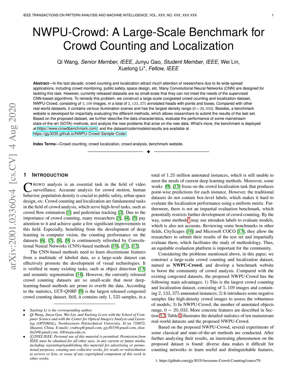 NWPU-Crowd: A Large-Scale Benchmark for Crowd Counting and Localization