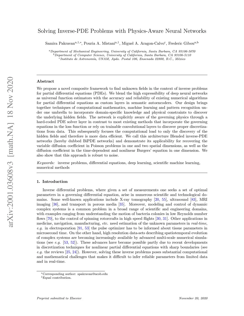 Solving inverse-PDE problems with physics-aware neural networks