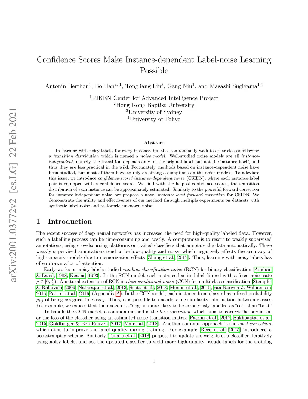 Confidence Scores Make Instance-dependent Label-noise Learning Possible