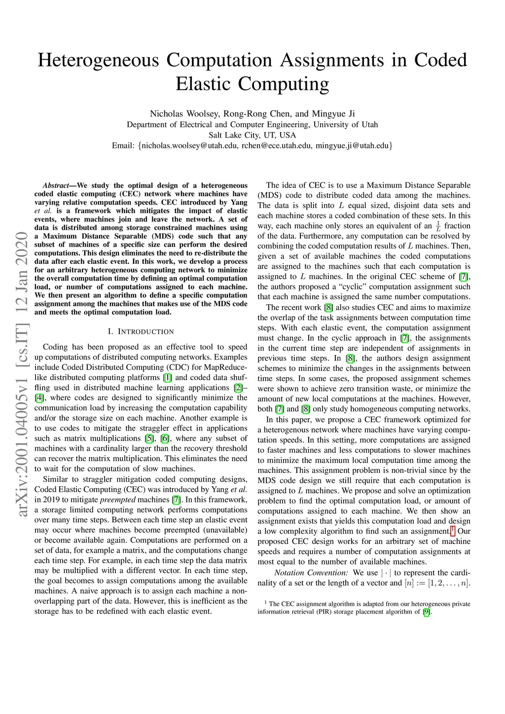 Heterogeneous Computation Assignments in Coded Elastic Computing