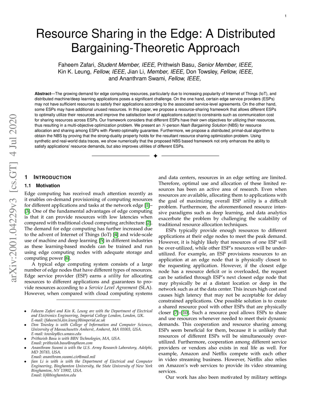Resource Sharing in the Edge: A Distributed Bargaining-Theoretic