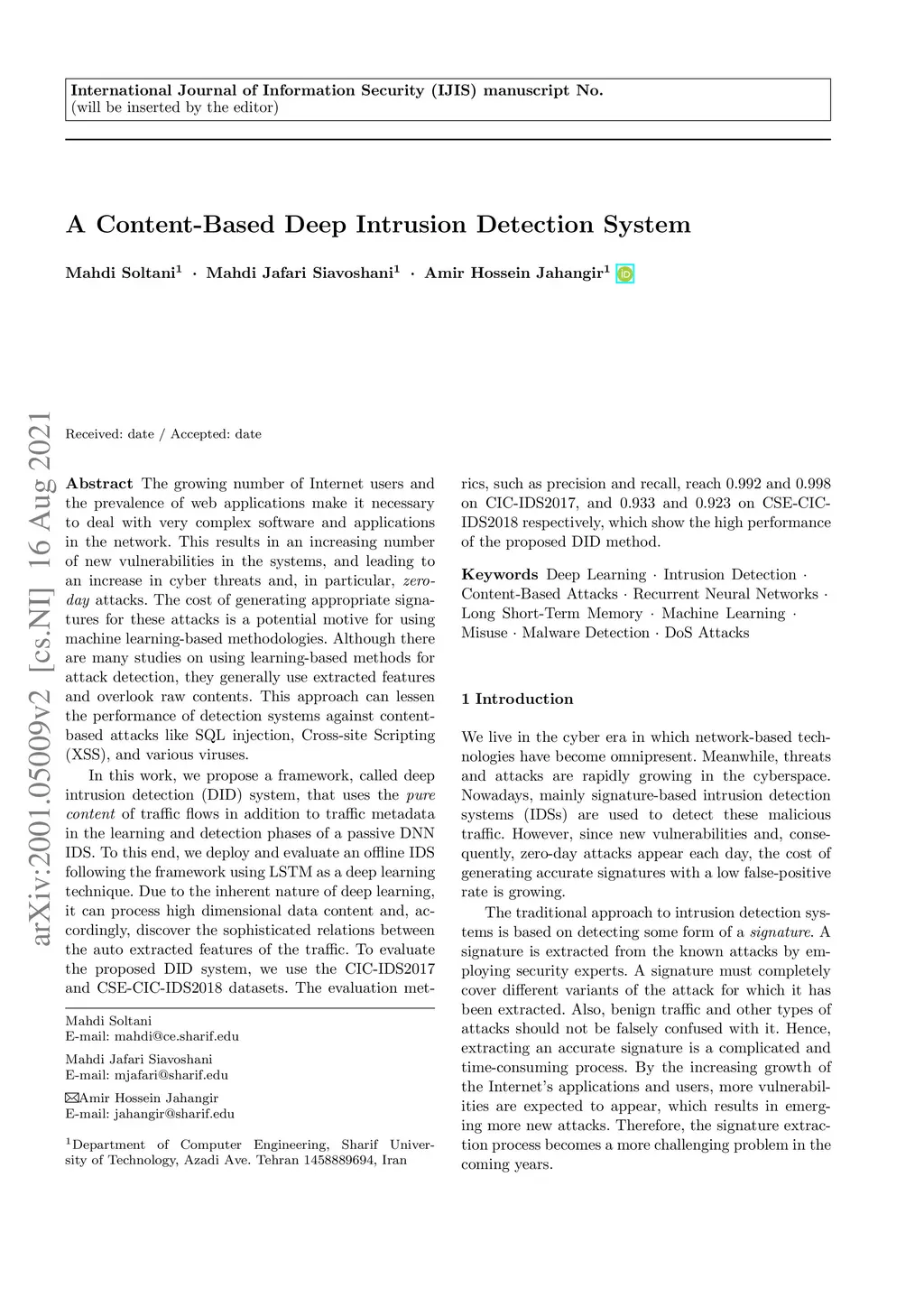 A Content-Based Deep Intrusion Detection System