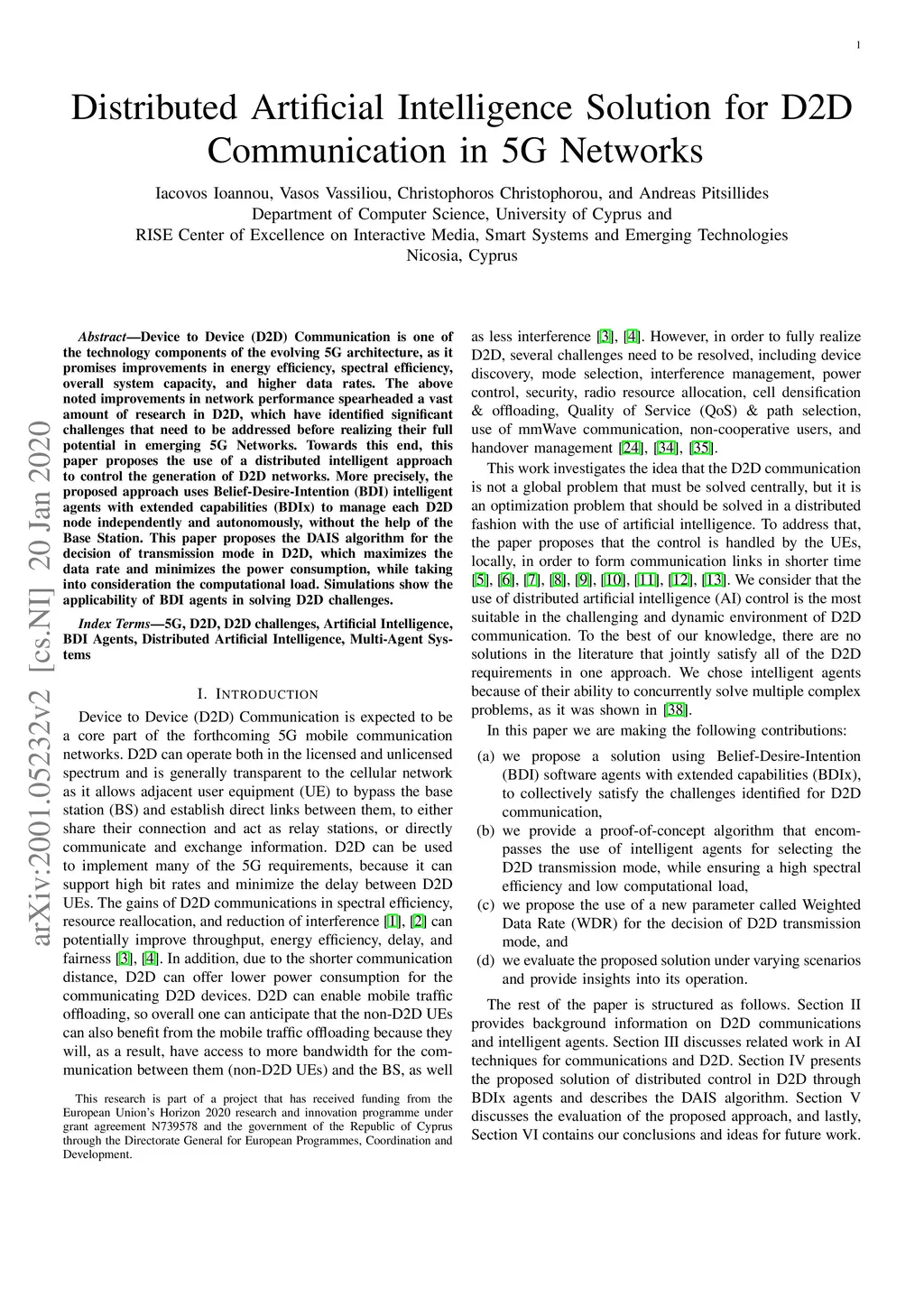 Distributed Artificial Intelligence Solution for D2D Communication in 5G