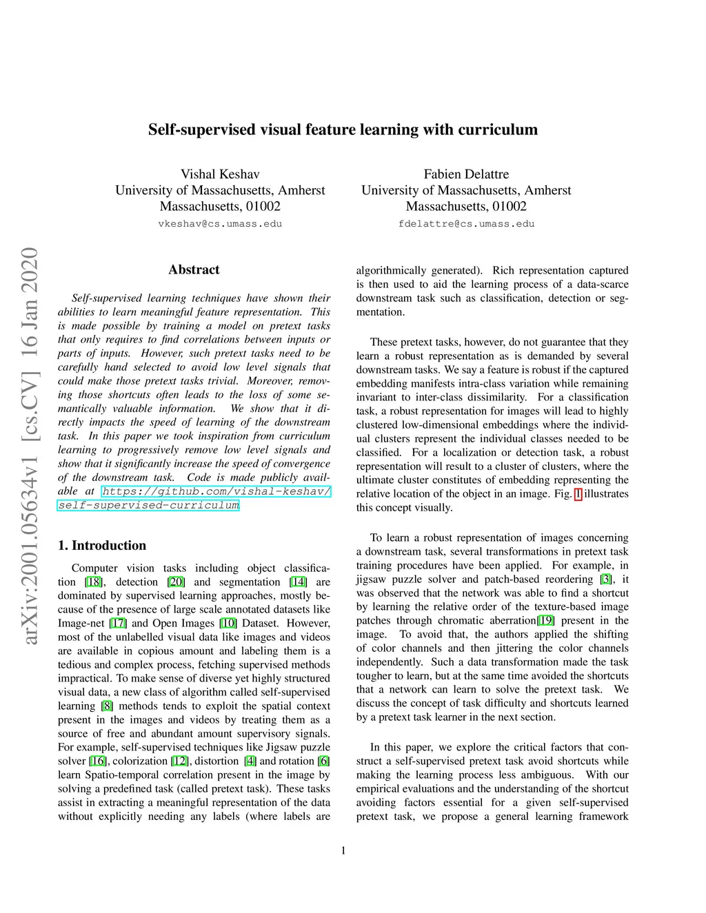 Self-supervised visual feature learning with curriculum