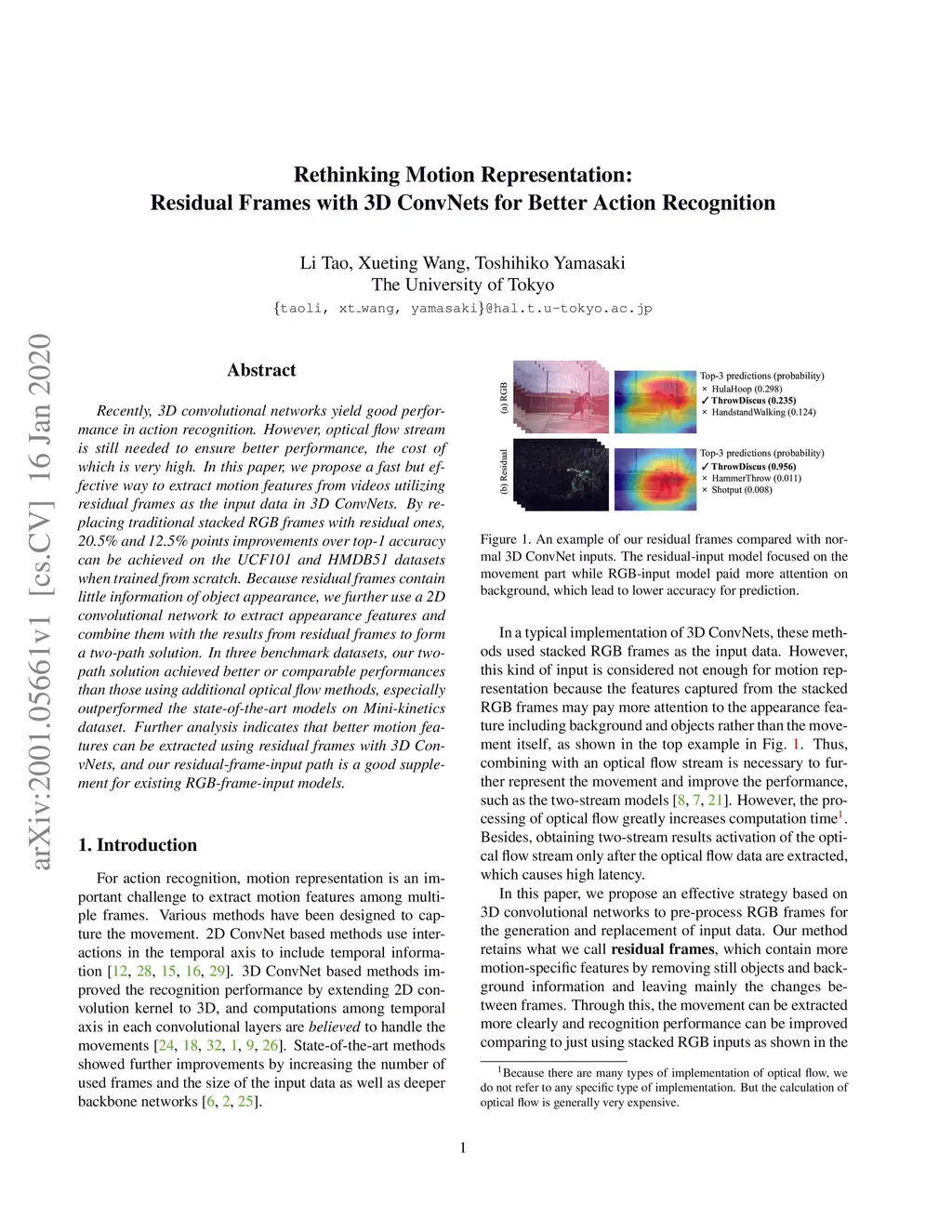 Rethinking Motion Representation: Residual Frames with 3D ConvNets for