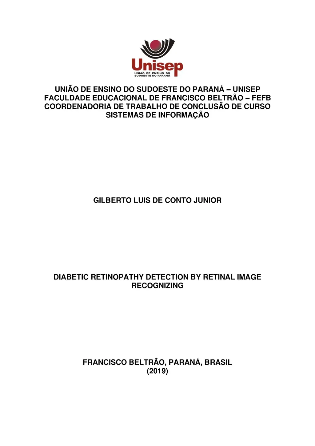 Many people are affected by diabetes around the world. This disease may have type 1 and 2. Diabetes brings with it several complications including diabetic retinopathy, which is a disease that if not treated correctly can lead to irreversible damage in the patient's vision. The earlier it is detected, the better the chances that the patient will not lose vision. Methods of automating manual procedures are currently in evidence and the diagnostic process for retinopathy is manual with the physician analyzing the patient's retina on the monitor. The practice of image recognition can aid this detection by recognizing Diabetic Retinopathy patterns and comparing it with the patient's retina in diagnosis. This method can also assist in the act of telemedicine, in which people without access to the exam can benefit from the diagnosis provided by the application. The application development took place through convolutional neural networks, which do digital image processing analyzing each image pixel. The use of VGG-16 as a pre-trained model to the application basis was very useful and the final model accuracy was 82%.