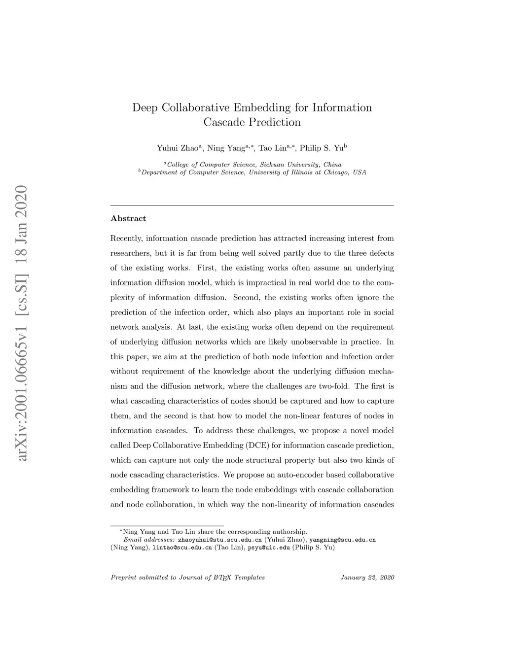 Deep Collaborative Embedding for information cascade prediction