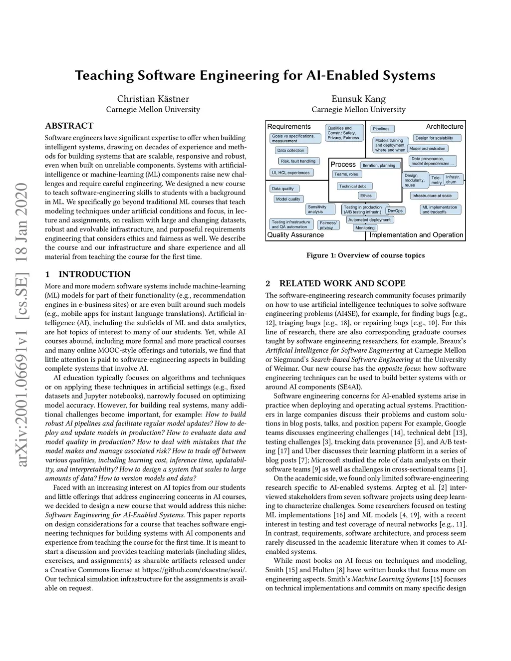Software engineers have significant expertise to offer when building intelligent systems, drawing on decades of experience and methods for building systems that are scalable, responsive and robust, even when built on unreliable components. Systems with artificial-intelligence or machine-learning (ML) components raise new challenges and require careful engineering. We designed a new course to teach software-engineering skills to students with a background in ML. We specifically go beyond traditional ML courses that teach modeling techniques under artificial conditions and focus, in lecture and assignments, on realism with large and changing datasets, robust and evolvable infrastructure, and purposeful requirements engineering that considers ethics and fairness as well. We describe the course and our infrastructure and share experience and all material from teaching the course for the first time.
