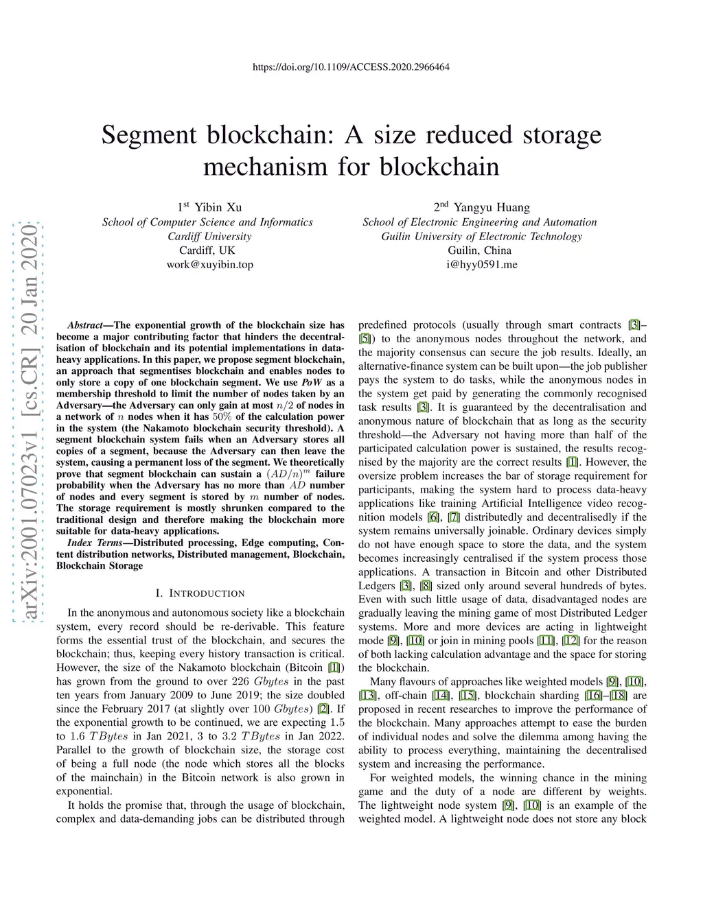 Segment blockchain: A size reduced storage mechanism for blockchain