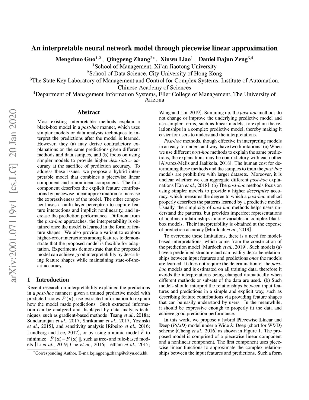 An interpretable neural network model through piecewise linear