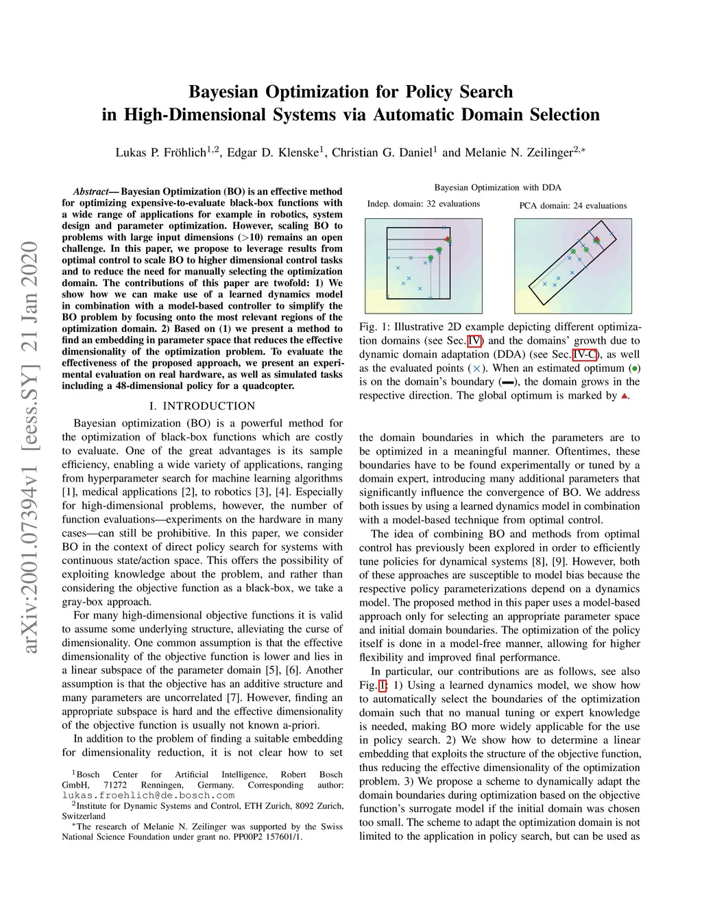 Bayesian Optimization for Policy Search in High-Dimensional Systems via