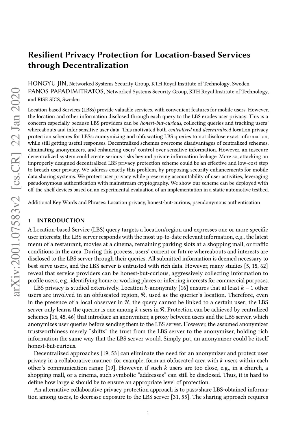Location-Based Services (LBSs) provide valuable services, with convenient features for mobile users. However, the location and other information disclosed through each query to the LBS erodes user privacy. This is a concern especially because LBS providers can be honest-but-curious, collecting queries and tracking users' whereabouts and infer sensitive user data. This motivated both centralized and decentralized location privacy protection schemes for LBSs: anonymizing and obfuscating LBS queries to not disclose exact information, while still getting useful responses. Decentralized schemes overcome disadvantages of centralized schemes, eliminating anonymizers, and enhancing users' control over sensitive information. However, an insecure decentralized system could create serious risks beyond private information leakage. More so, attacking an improperly designed decentralized LBS privacy protection scheme could be an effective and low-cost step to breach user privacy. We address exactly this problem, by proposing security enhancements for mobile data sharing systems. We protect user privacy while preserving accountability of user activities, leveraging pseudonymous authentication with mainstream cryptography. We show our scheme can be deployed with off-the-shelf devices based on an experimental evaluation of an implementation in a static automotive testbed.
