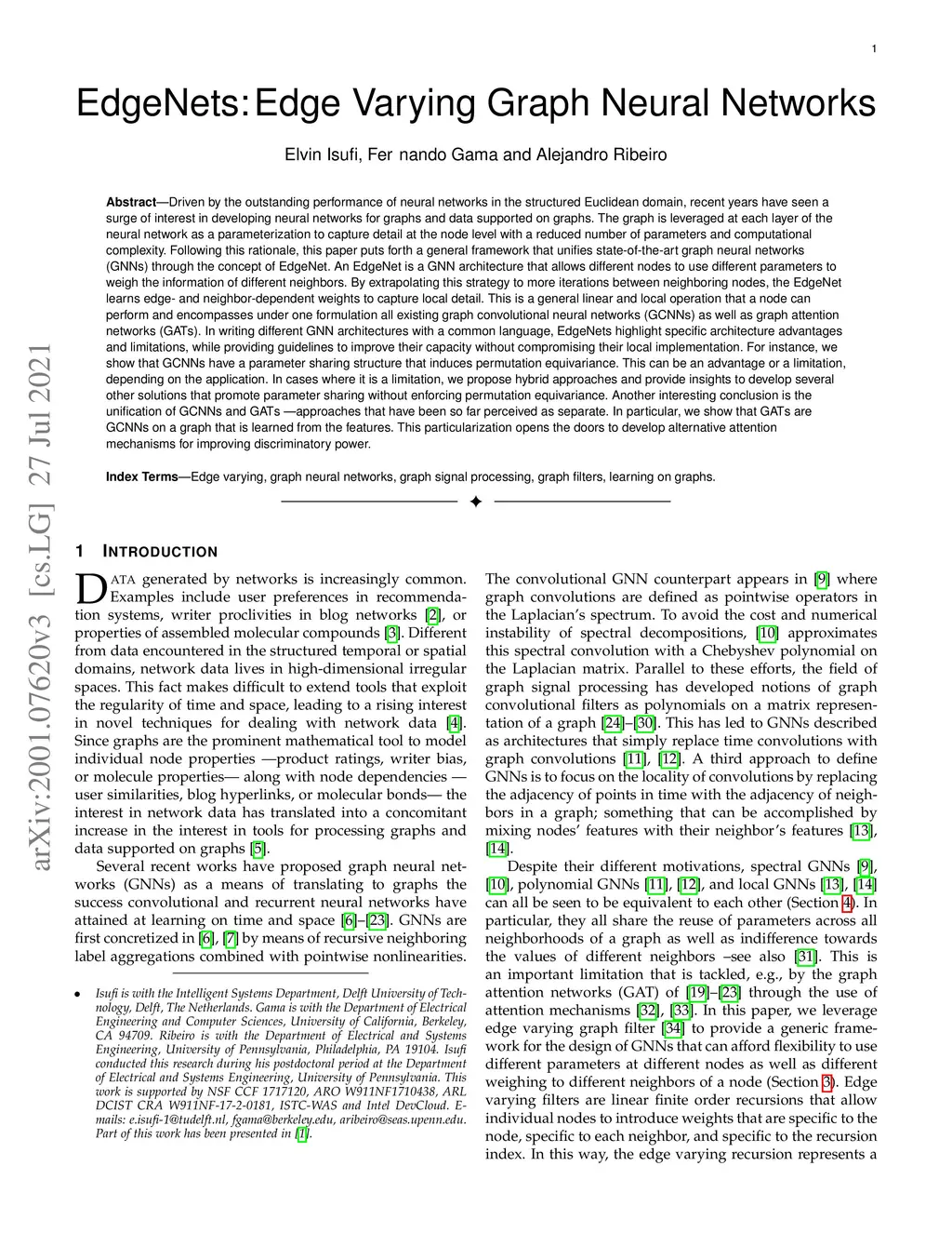 Driven by the outstanding performance of neural networks in the structured Euclidean domain, recent years have seen a surge of interest in developing neural networks for graphs and data supported on graphs. The graph is leveraged at each layer of the neural network as a parameterization to capture detail at the node level with a reduced number of parameters and computational complexity. Following this rationale, this paper puts forth a general framework that unifies state-of-the-art graph neural networks (GNNs) through the concept of EdgeNet. An EdgeNet is a GNN architecture that allows different nodes to use different parameters to weigh the information of different neighbors. By extrapolating this strategy to more iterations between neighboring nodes, the EdgeNet learns edge- and neighbor-dependent weights to capture local detail. This is a general linear and local operation that a node can perform and encompasses under one formulation all existing graph convolutional neural networks (GCNNs) as well as graph attention networks (GATs). In writing different GNN architectures with a common language, EdgeNets highlight specific architecture advantages and limitations, while providing guidelines to improve their capacity without compromising their local implementation. An interesting conclusion is the unification of GCNNs and GATs -- approaches that have been so far perceived as separate. In particular, we show that GATs are GCNNs on a graph that is learned from the features. This particularization opens the doors to develop alternative attention mechanisms for improving discriminatory power.