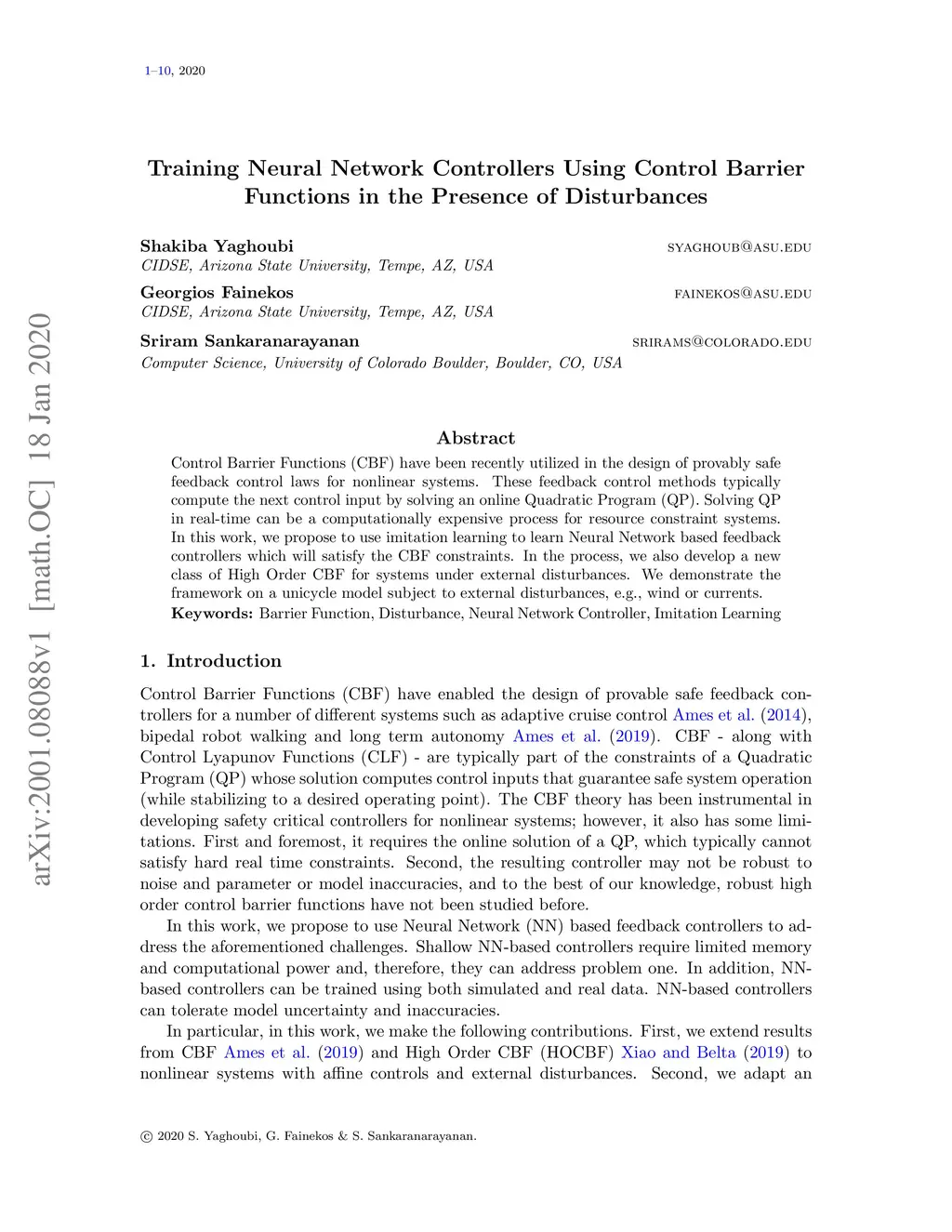 Control Barrier Functions (CBF) have been recently utilized in the design of provably safe feedback control laws for nonlinear systems. These feedback control methods typically compute the next control input by solving an online Quadratic Program (QP). Solving QP in real-time can be a computationally expensive process for resource constraint systems. In this work, we propose to use imitation learning to learn Neural Network-based feedback controllers which will satisfy the CBF constraints. In the process, we also develop a new class of High Order CBF for systems under external disturbances. We demonstrate the framework on a unicycle model subject to external disturbances, e.g., wind or currents.