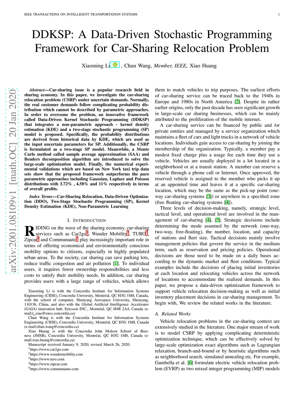 DDKSP: A Data-Driven Stochastic Programming Framework for Car-Sharing