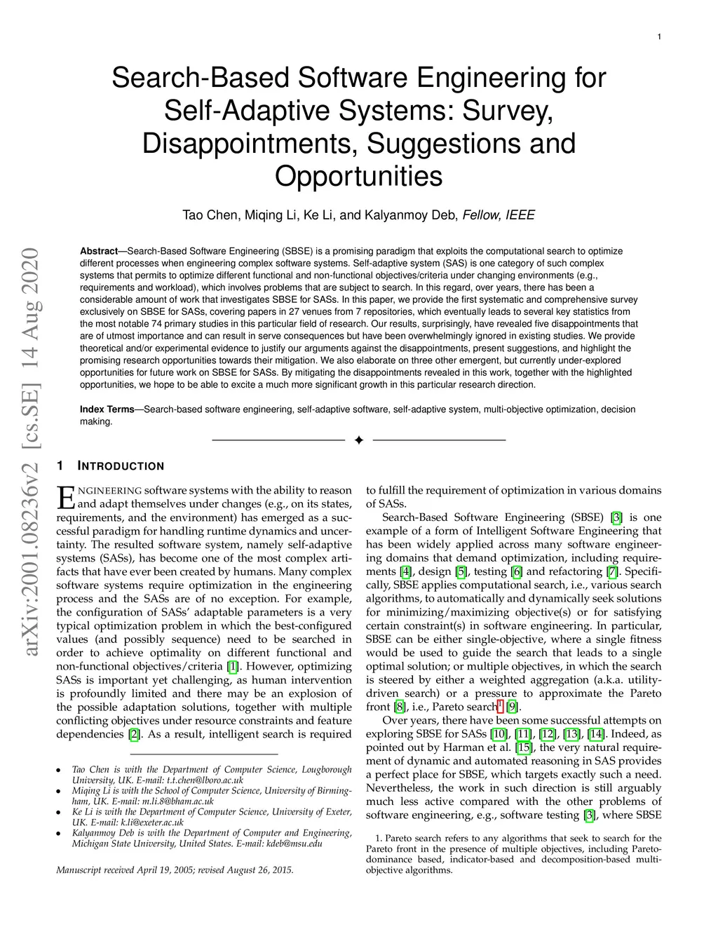 Search-Based Software Engineering for Self-Adaptive Systems: Survey,