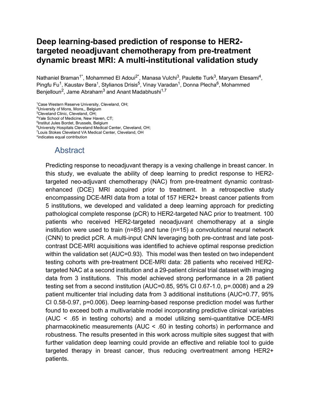 chemotherapy from pre-treatment dynamic breast MRI: A multi-institutional