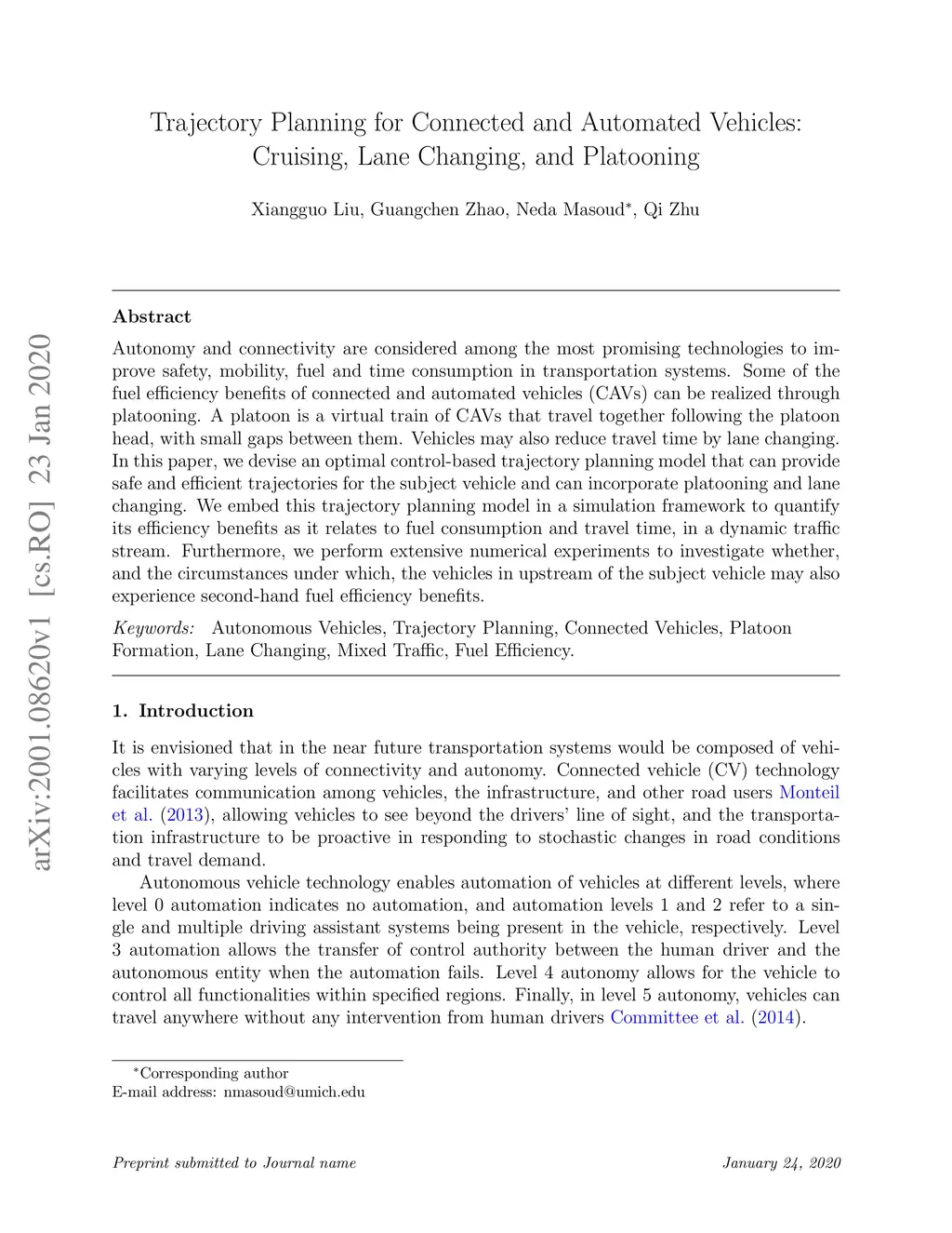 Trajectory Planning for Connected and Automated Vehicles: Cruising, Lane