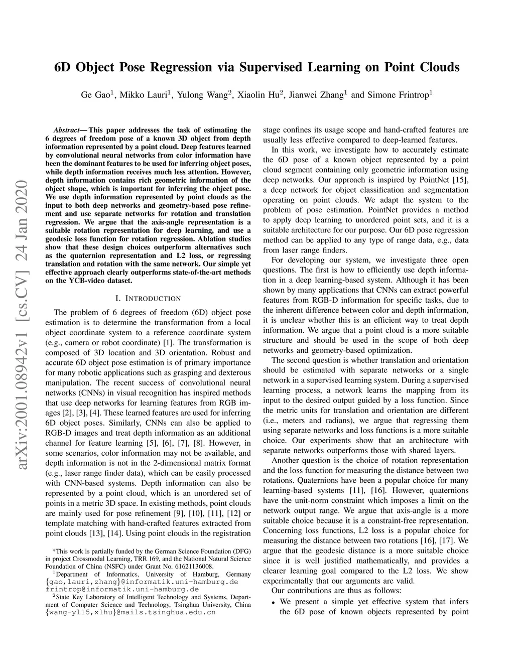 6D Object Pose Regression via Supervised Learning on Point Clouds