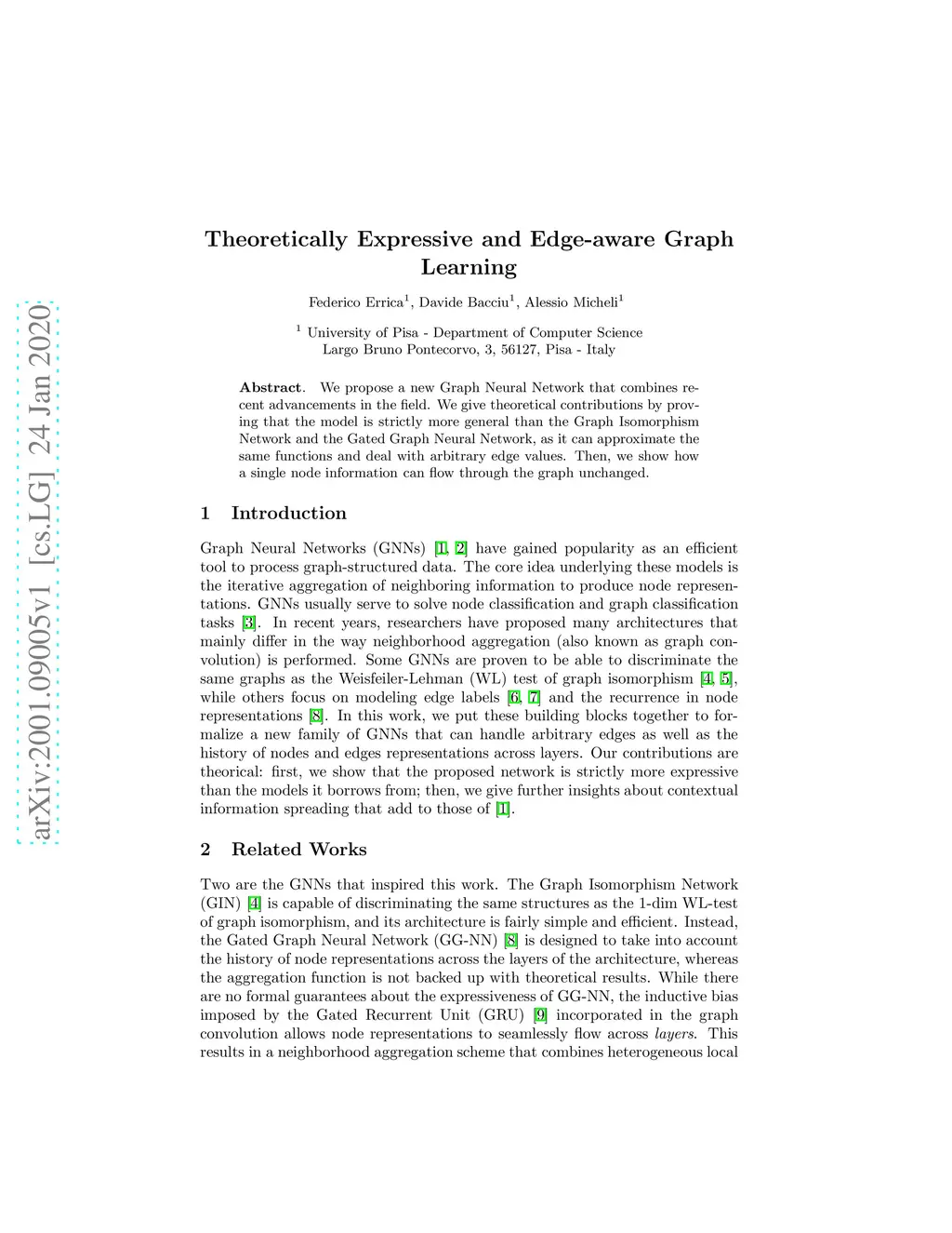 We propose a new Graph Neural Network that combines recent advancements in the field. We give theoretical contributions by proving that the model is strictly more general than the Graph Isomorphism Network and the Gated Graph Neural Network, as it can approximate the same functions and deal with arbitrary edge values. Then, we show how a single node information can flow through the graph unchanged.